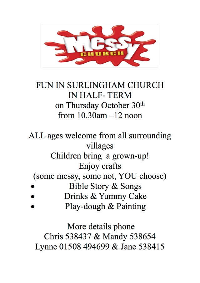 Messy Church October 30th 10:30-12:00, Surlingham St Mary’s
