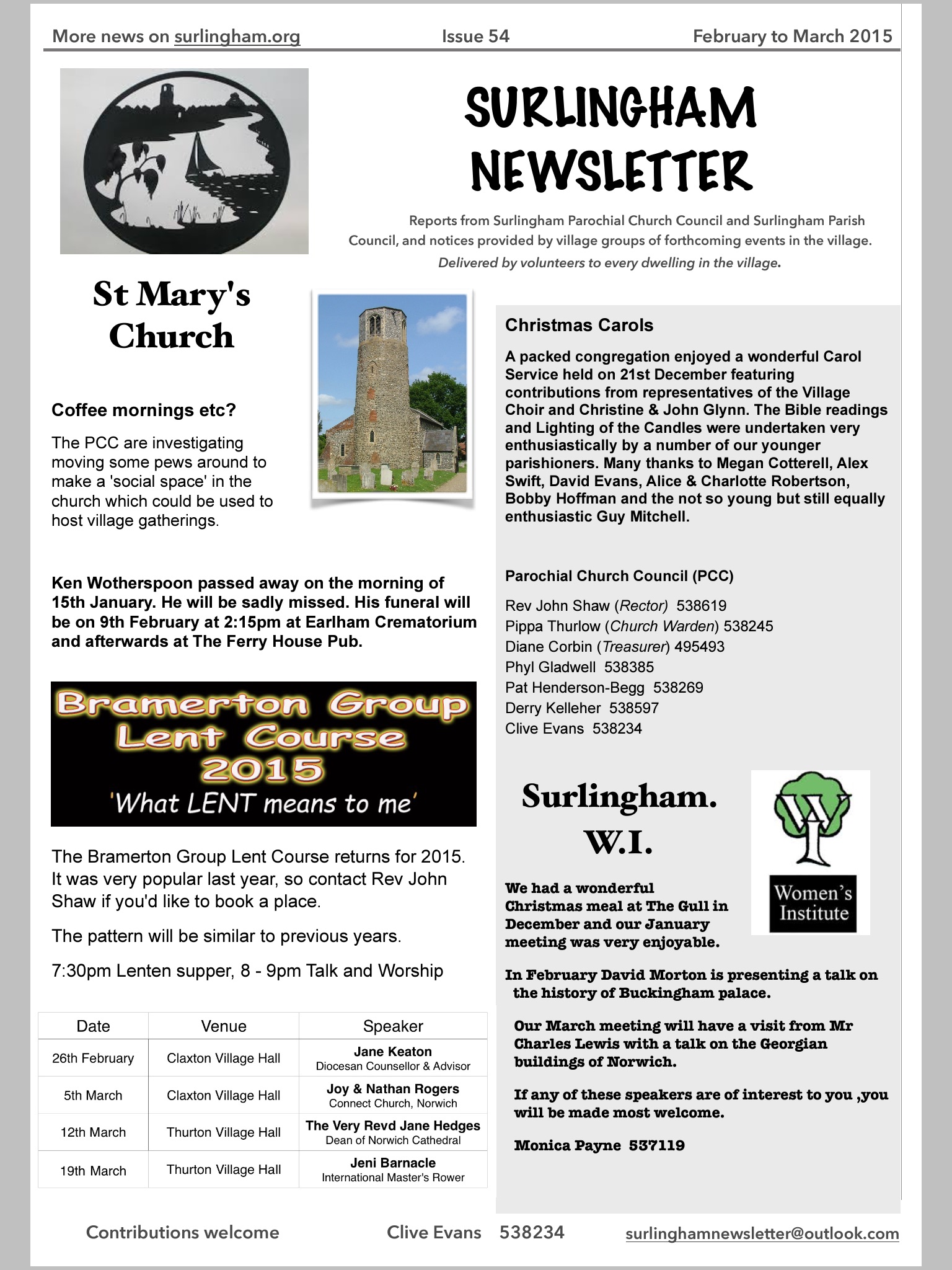• Luncheon Club 18/01/2026 at 12:30 – 13:30 A two course roast lunch costing only £4.50 is served at 12.30pm every 3rd Wednesday. To reserve a place please telephone Karen Brooks on 538075 by Monday of the week before.