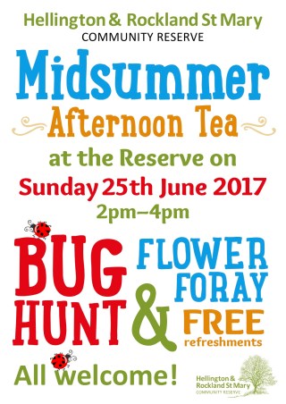 You are invited to a Midsummer Afternoon Tea on the Hellington and Rockland St Mary Community Reserve.