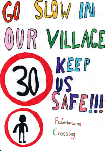 Surlingham Primary School children had a competition to design posters to encourage drivers to slow down in the village. The two winning posters are shown below. The Parish Council has asked Norfolk County Council to advise if the posters are suitable for making into signs and if they are, to advise where they can lawfully be placed.