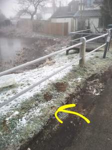 If anyone in the village has a spare orange cone it might be an idea to put it over it until NCC get around to removing it.