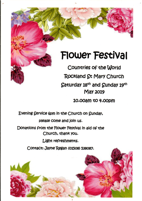 Rockland St Mary Flower Festival Saturday 18th and Sunday 19th May 2019