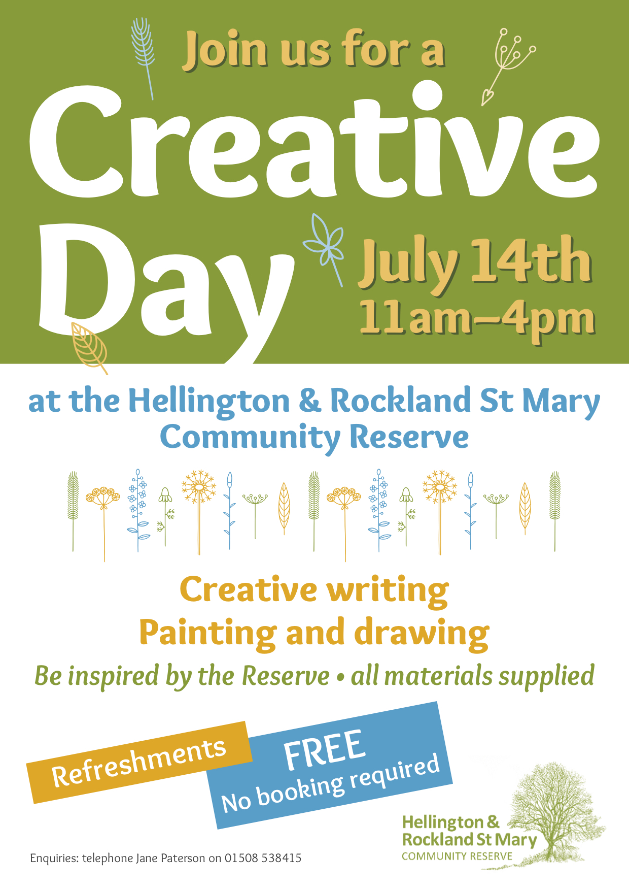Join us for a Creative Day at the Hellington & Rockland St Mary Community Reserve July 14th 11am–4pm
