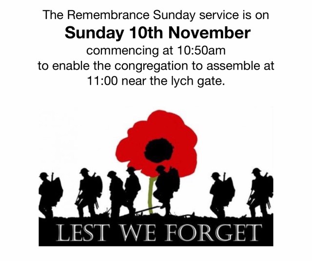 Remembrance Sunday service on 10th November at 10:50am