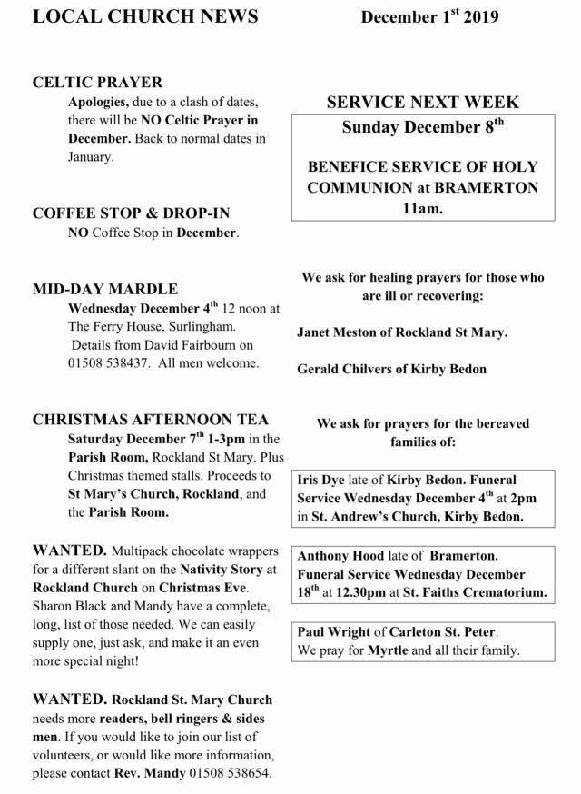 Church News. December 1st 2019