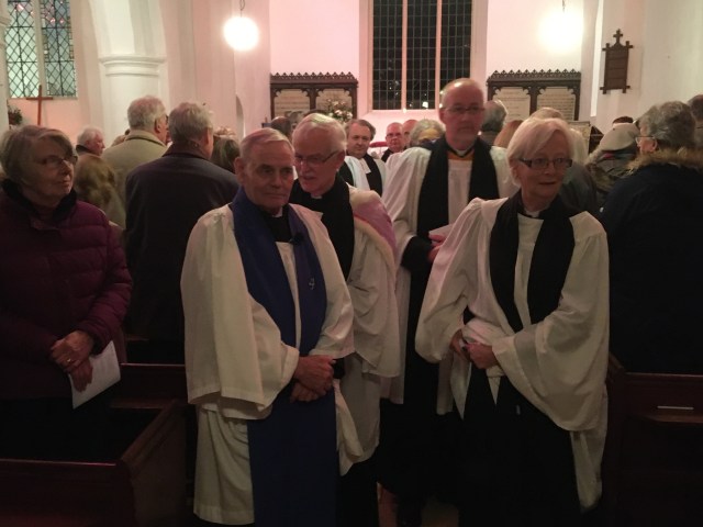 The service was conducted by the Bishop of Thetford, the Rt Revd Dr Alan Winton assisted by the Archdeacon, the Ven Steven Betts, the Rural Dean, the Revd David Owen and attended by many clergy from the diocese. It was sincere yet both formal and light hearted.