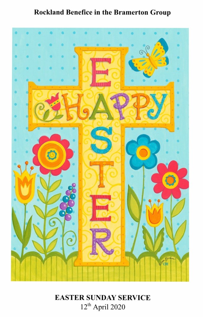 Today’s Easter service comes from the Barn at The Rockland Rectory. Click on the video to see the service. The words to the service are on this service sheet Easter1RockBen20b. You can hear the tunes on the video.