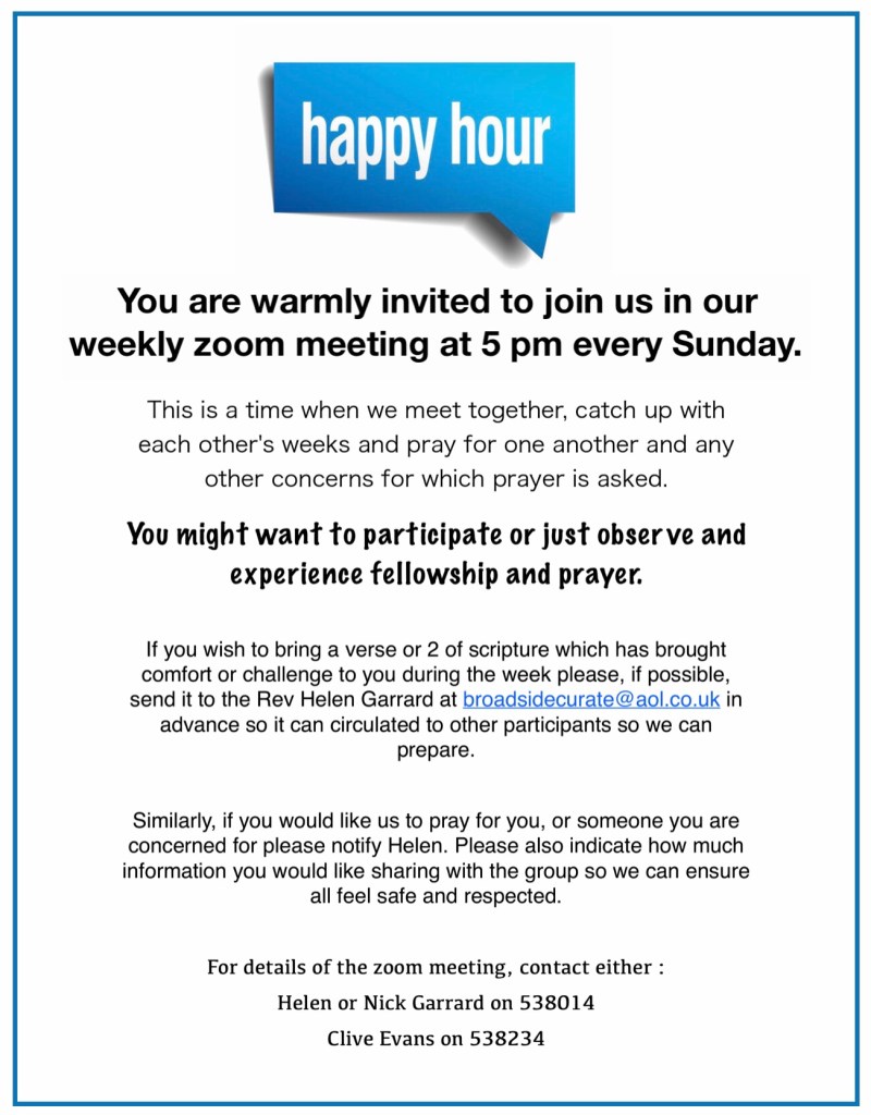Following the success of last week’s zoom get together, Helen and Nick Garrard have decided to make this a regular 5pm gathering for everyone in the 6 parishes of Rockland Benefice during lockdown.