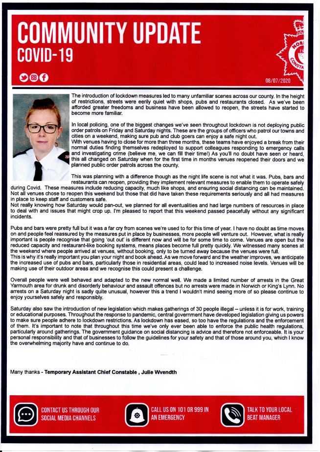 Community Update Covid-19 Temporary Assistant Cheif Constable Julie Wvendth – 8 July 2020