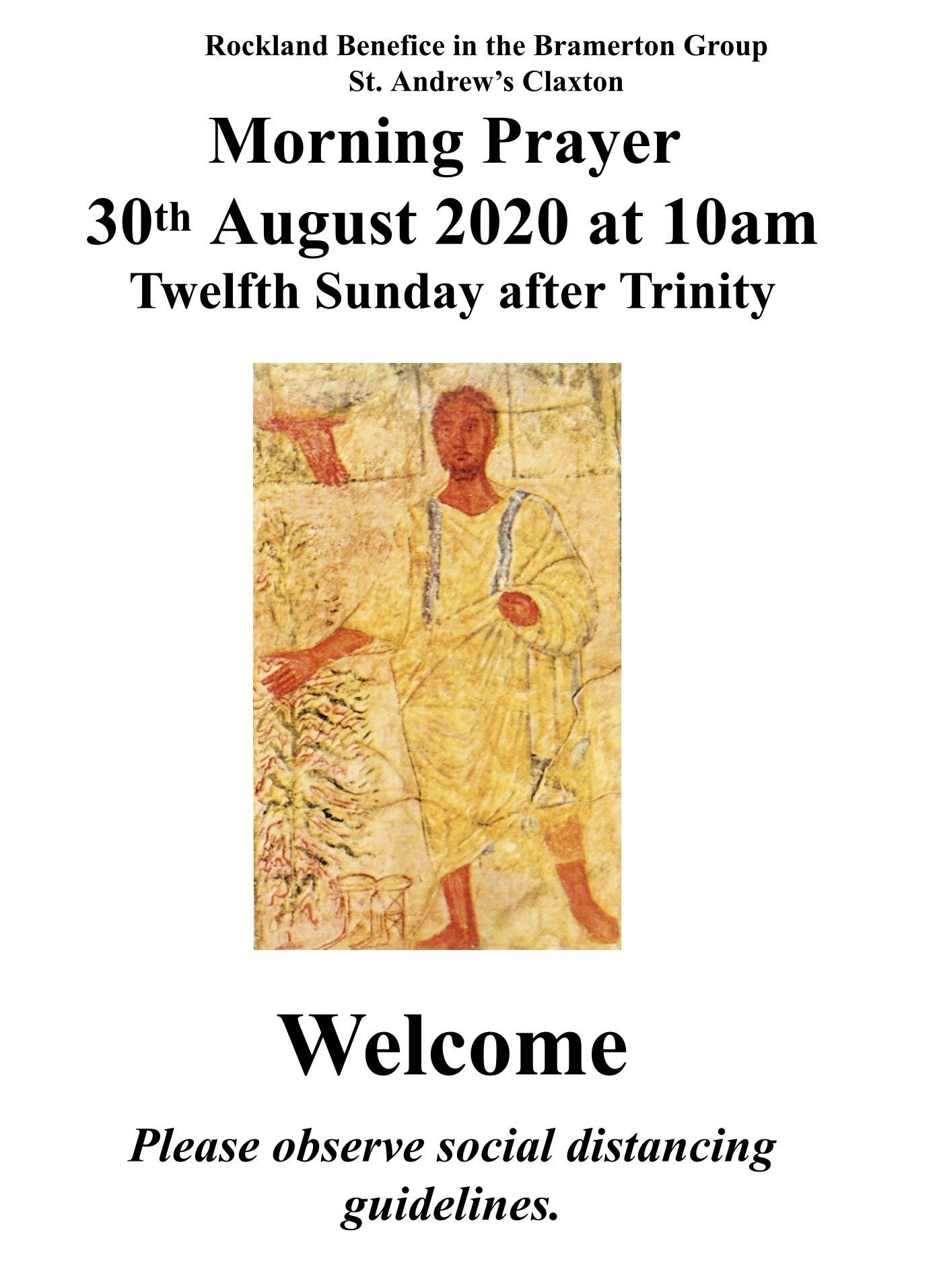 The church service this Sunday is at St Andrew’s in Claxton. A copy of the service sheet is attached if you are unable to attend morning-prayer-30.8.20-trin-12.docx