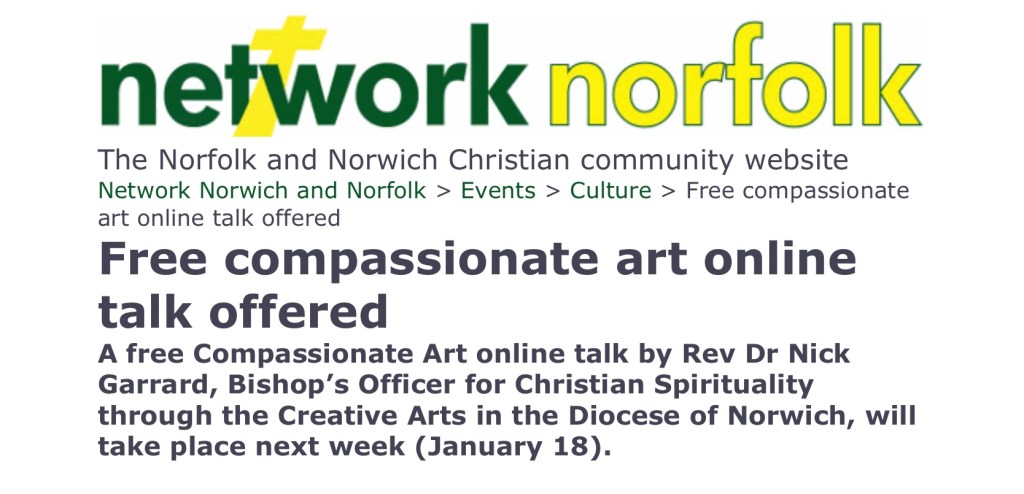Pre-registered guests can sit back, relax and be inspired by artists demonstrating compassion in a variety of media by Nick, who has kindly offered to give this talk on behalf of Hospice Ethiopia UK to raise funds in what has been a very difficult time for fundraising.