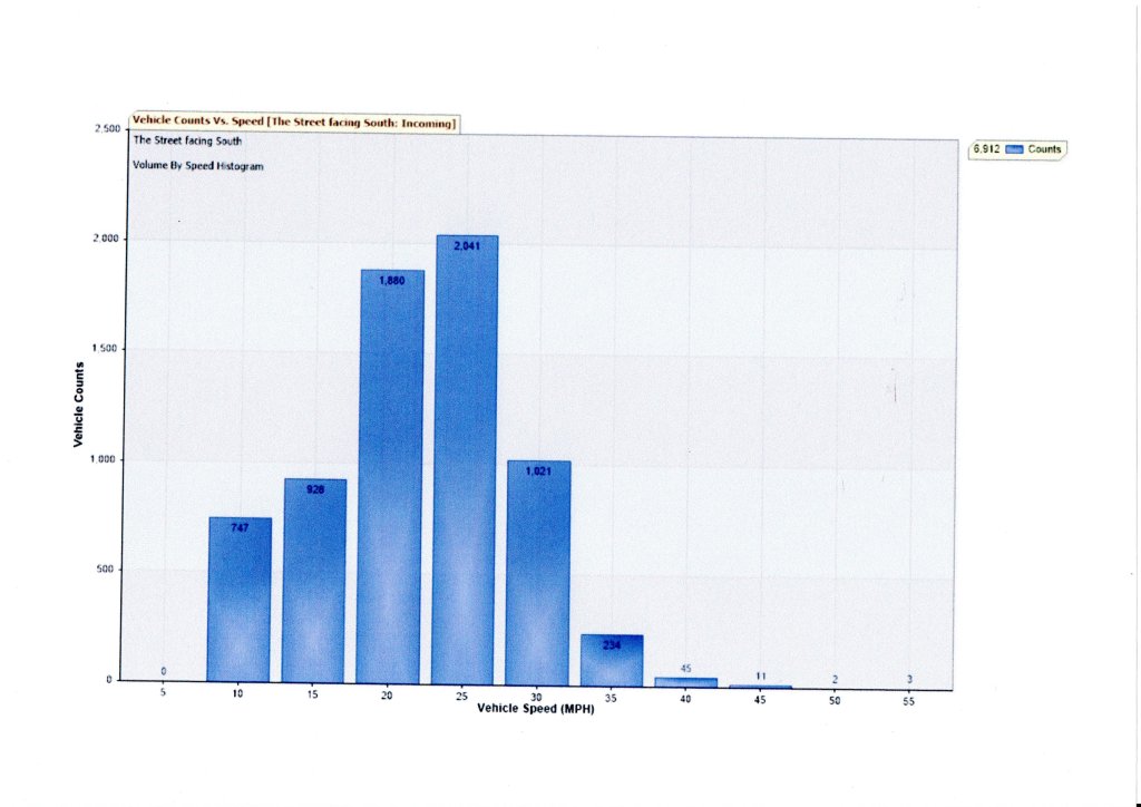 The following shows the volume and speed of vehicles through the Street beween 30 December 2020 and 8 March 2021. Some 6912 vehicles in just under 10 weeks, with 295 exceeding the 30 mph speed limit.