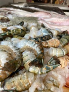 Plaice fillets, salmon fillets, haddock fillets, seabass fillets, whole seabass, whole seabream, whole mackerel, extra large halibut, extra large cod, monkfish cheeks, whole trout, octopus, extra large tiger prawns, fish pie mix, skate, skate strips, swordfish, scallops, tuna, smoked haddock, peeled brown shrimp, smoked salmon, squid salad, shell on prawns, Brancaster mussels, Maldon oysters, samphire, sweet herring rollmops, dill herring rollmops, kippers, dressed crabs, anchovies, Dorset clams, Leigh-on-sea cockles, hot smoked salmon, smoked mackerel