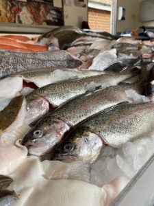 Plaice, salmon, seabass, whole mackerel, whole seabass, whole seabream, whole trout, cod, haddock, halibut, fish pie mix, monkfish, dover sole, extra large tiger prawns, swordfish steaks, scallops, skate wing, tuna steaks, smoked haddock, smoked salmon, cooked shell on prawns, squid salad, clams, samphire, peeled brown shrimps, kippers, oysters, fresh whole brown shrimps, dressed crabs, smoked mackerel, hot smoked salmon, cockles, crayfish tails, rollmops, anchovies.