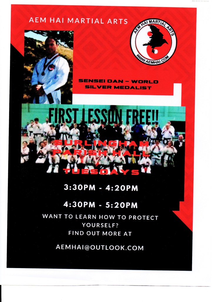 AEM HAI MARSHALL ARTS – Parish Hall = First Lesson Free