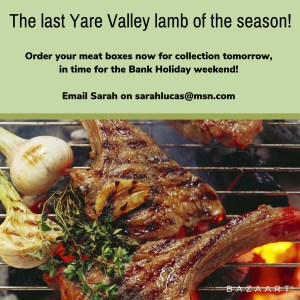 The last of our farm reared lamb – order your meat boxes ready for collection tomorrow, in time for the Bank Holiday weekend. Just email sarahlucas@msn.com for any enquiries/orders.
