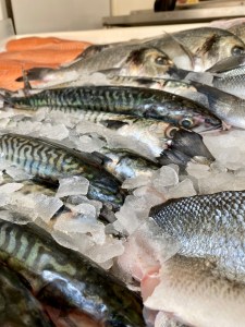 Plaice fillets, salmon fillet, cod fillet, haddock fillet, whole rainbow trout, whole sea bream, whole sea bass, sea trout fillet, turbot, sea bass fillets, tiger prawns, fish pie mix, tuna steaks, scallops, skate wing, smoked haddock, shell on prawns, rollmops, kippers, samphire, dressed crabs, peeled brown shrimps, anchovies, octopus salad, cockles, crayfish tails, hot smoked salmon, smoked mackerel.