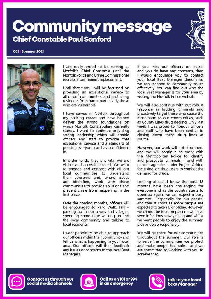 Community message from Chief Constable Paul Sanford