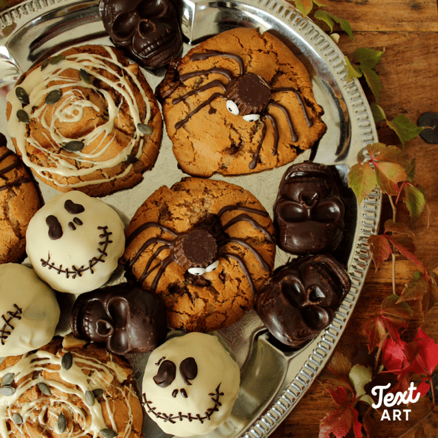 - CARAMEL SPIDER COOKIES (our famous cookie dough, loaded with chunks of caramel chocolate bars)