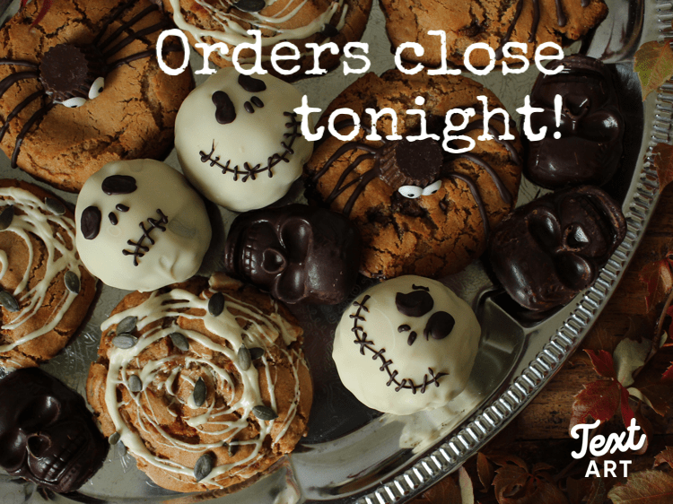 Today is your last chance to order some Spooky and Scrumptious sweet treats. Orders will close at midnight, TONIGHT!