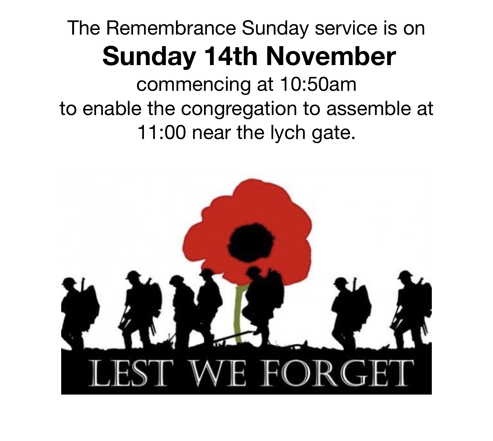Please make every effort to attend the Remembrance Sunday service at St Mary’s Church Surlingham tomorrow 14th November from 10:50 to remember and respect the memory of those from our community who have given their lives in the service of others.