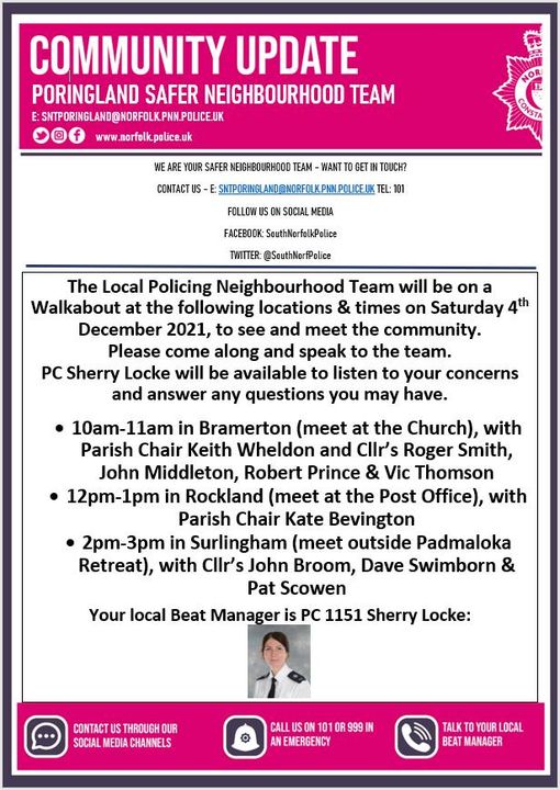 Community Update – Poringland Safer Neighbourhood Team