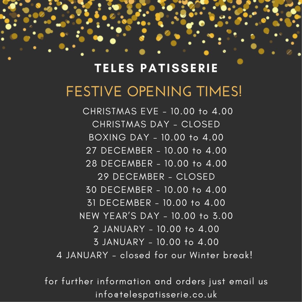Also as in previous years, we will be open thoughout Christmas, except on Christmas day. See our opening hours below too.