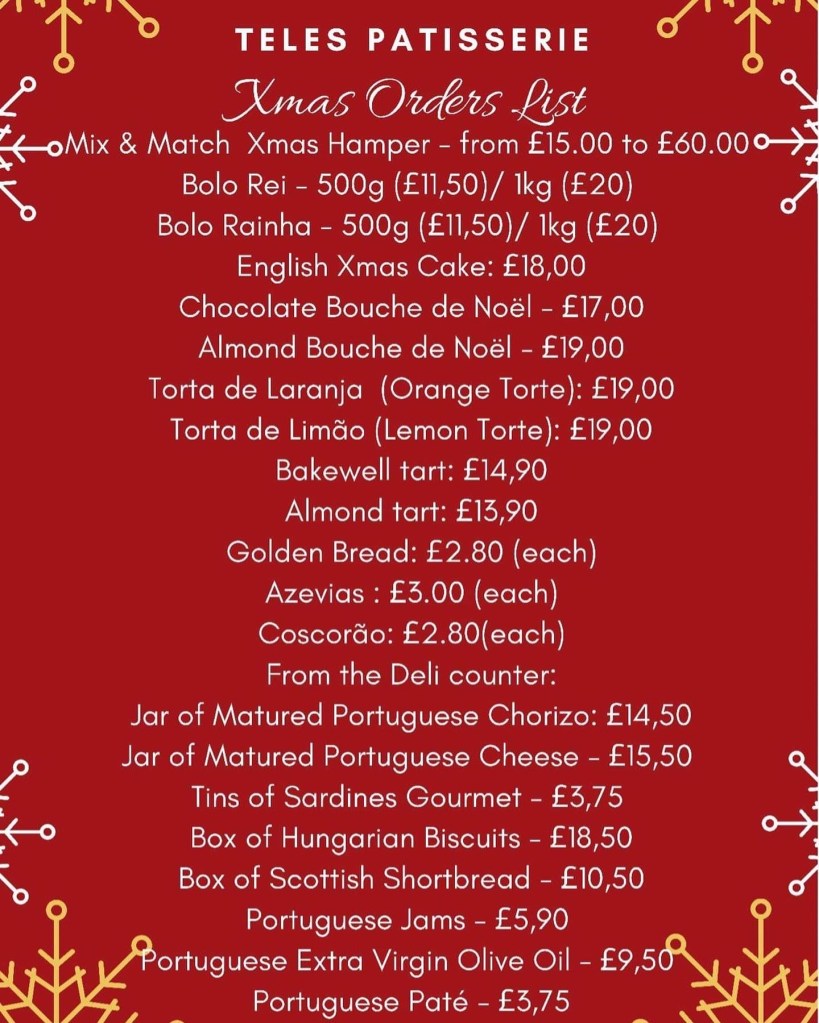 As last year, we have a special Christmas goodies menu (orders are open until the 21st of December) and a New Year’s Eve menu (orders close on the 28th December). Just ring us or email to pre order.