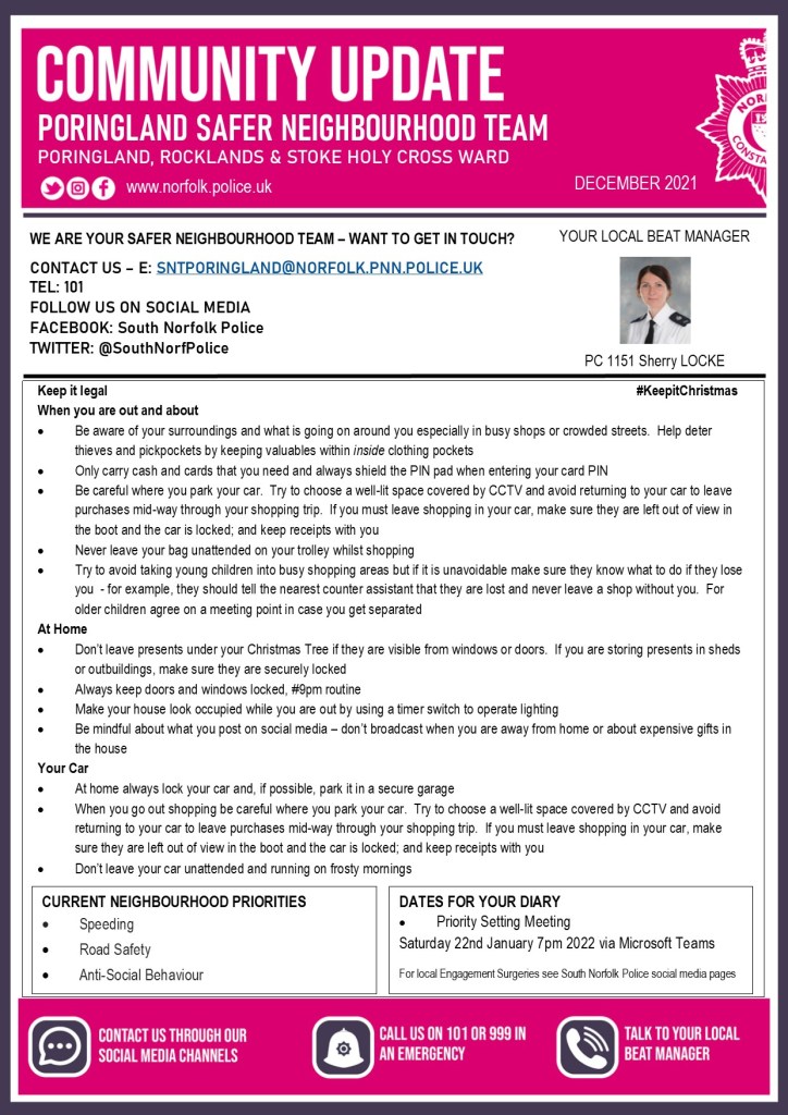 Community Update – Poringland Safer Neighbourhood Team