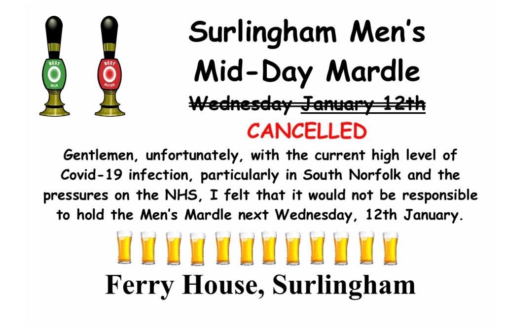 • Mens Mardle 08/01/2026 at 12:00 – 14:00 Surlingham Ferryn1 Ferry RoadnSurlinghamnNorfolknNR14 7ARnUnited Kingdom