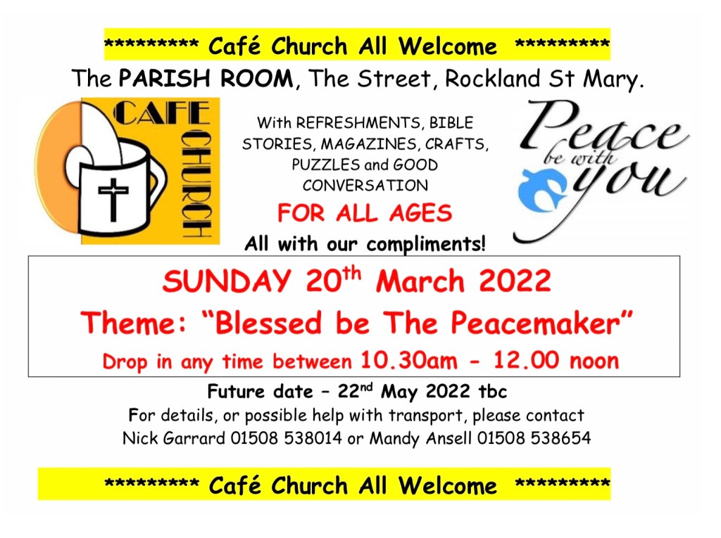 Cafe Church this Sunday, 20th March 10:30-12:00 in the Rockland St. Mary Parish Rooms.