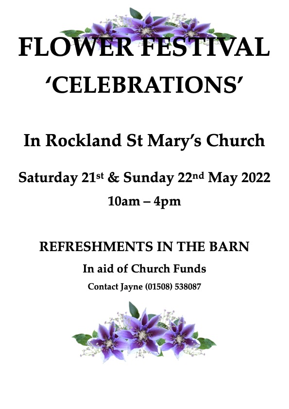 Flower Festival, Rockland St Mary Church – 21st & 22nd May 2022, 10-4