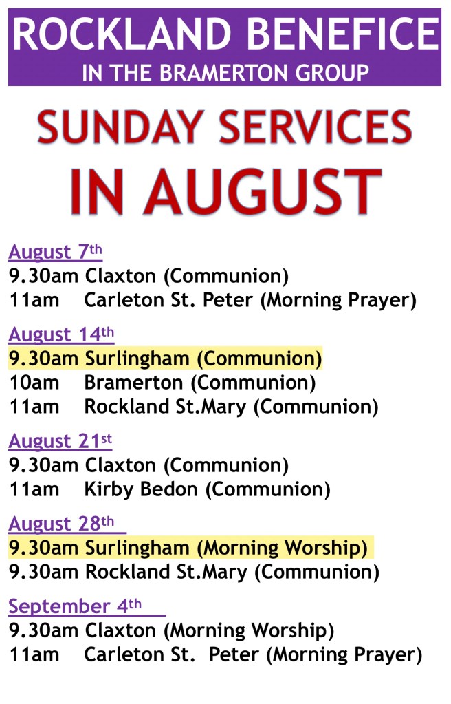 It would be lovely to see as many people as possible attend the services in our beautiful Church. Sunday 28th August is a family service suitable for everyone and anyone 😊