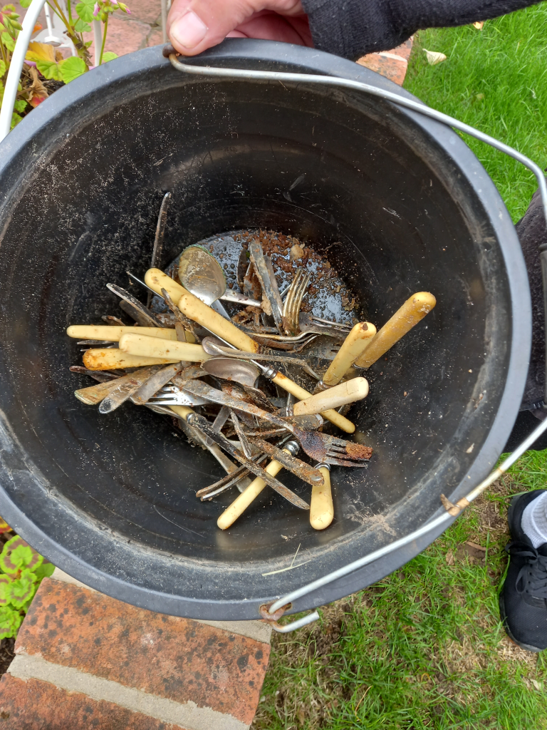 If you have cutlery or any other household equipment to dispose of please use the correct recepticle i.e. your household bin or take to the tip. The cutlery below was placed in the Grit Bin on Mill Road.