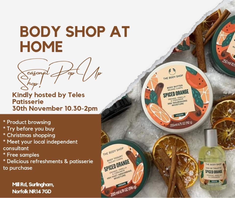 And… tomorrow don’t forget we have a pamper day at the Patisserie! The lovely Helen Radlett will be with us from 10.30 with her Body Shop selection: come, browse, try all with great cake and coffee!