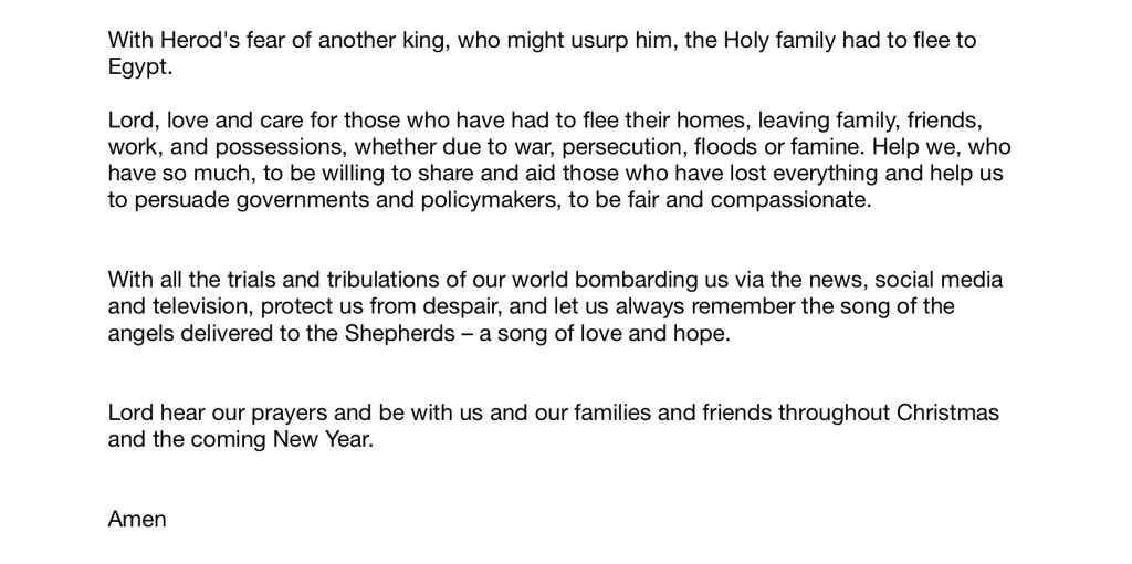 Merry Christmas and thank you to everyone who attended this morning’s service at St Mary’s.