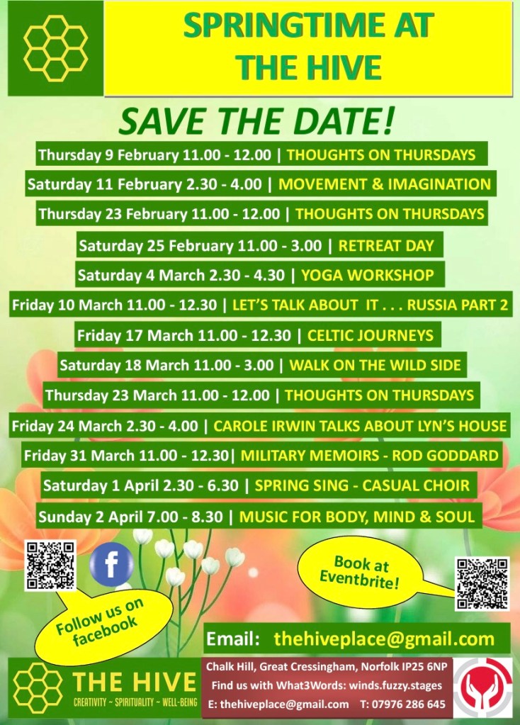 I’ve also attached The Hive’s lively and varied Spring Programme, and a poster for ‘The Body of Christ’, a solo exhibition of drawings by Lynda Waterson, who is part of the Barn community.