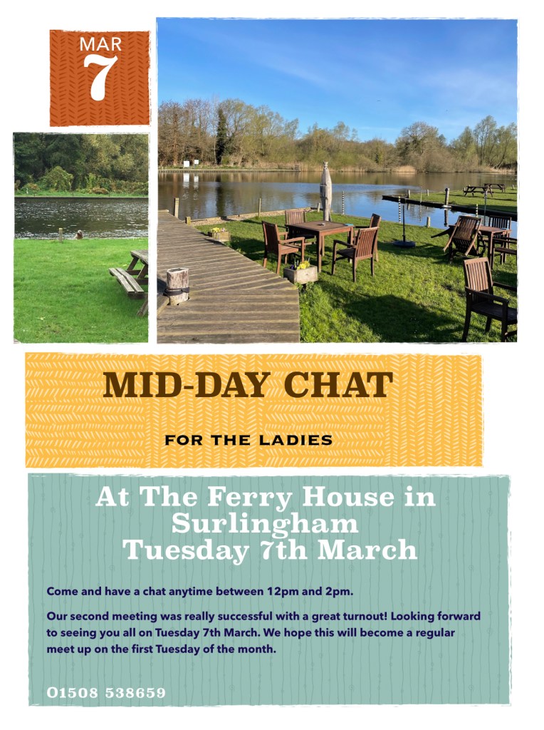 • Mens Mardle 08/01/2026 at 12:00 – 14:00 Surlingham Ferryn1 Ferry RoadnSurlinghamnNorfolknNR14 7ARnUnited Kingdom