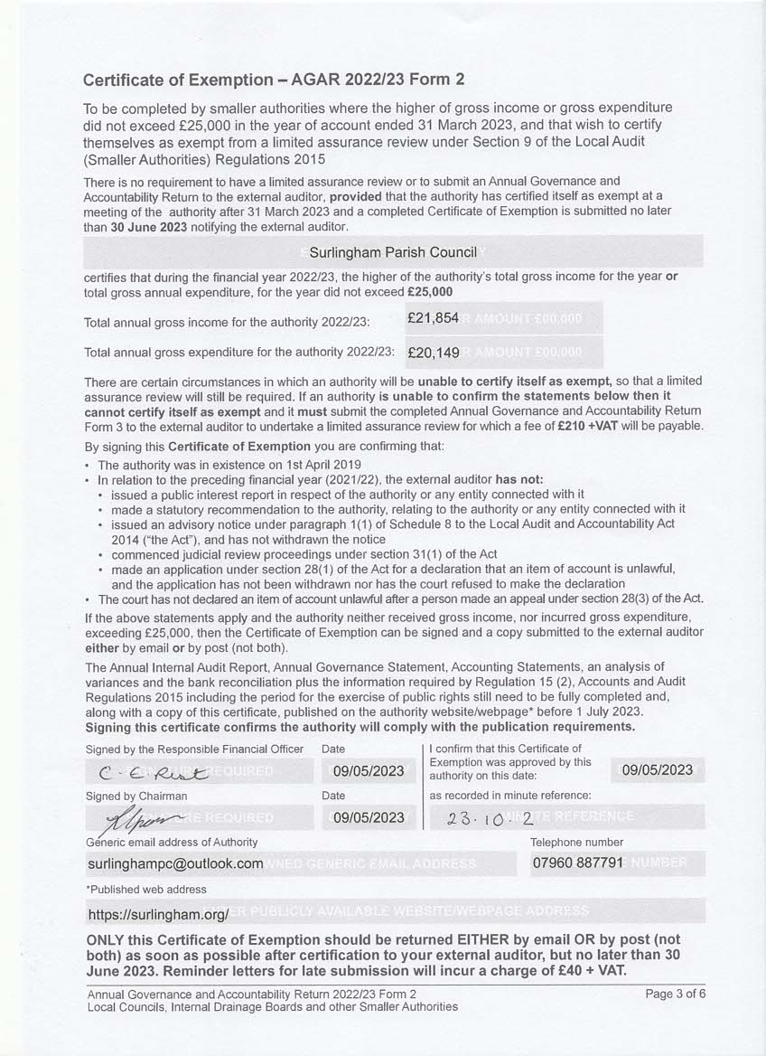 NOTICE OF PUBLIC RIGHTS AND PUBLICATION OF ANNUAL GOVERNANCE & ACCOUNTABILITY RETURN (EXEMPT AUTHORITY)