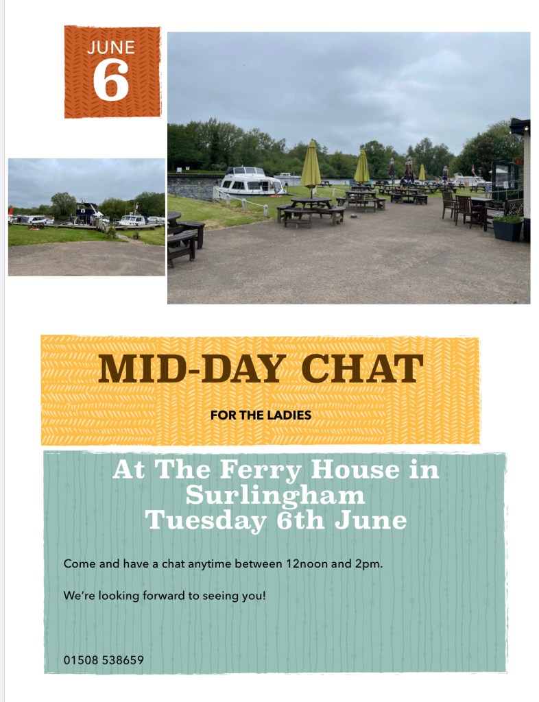 • Mens Mardle 08/02/2026 at 12:00 – 14:00 Surlingham Ferryn1 Ferry RoadnSurlinghamnNorfolknNR14 7ARnUnited Kingdom