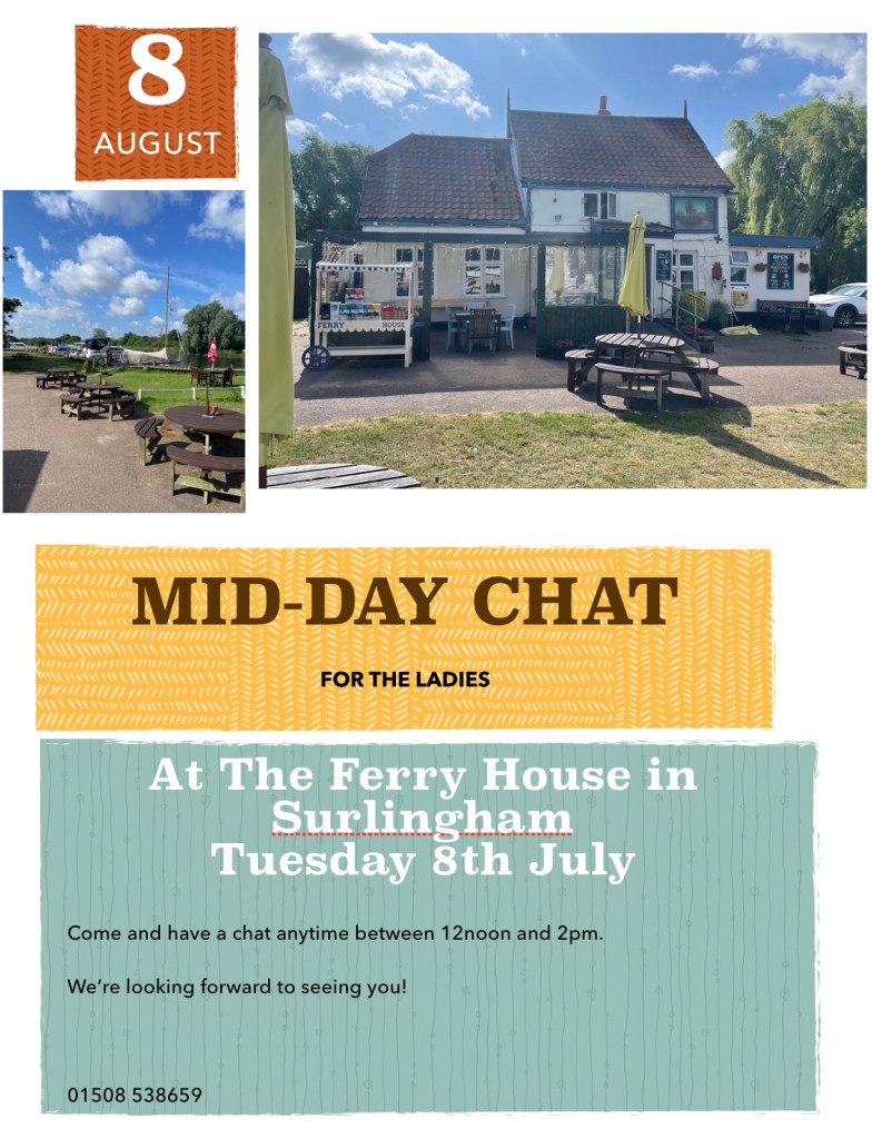 • Mens Mardle 08/02/2026 at 12:00 – 14:00 Surlingham Ferryn1 Ferry RoadnSurlinghamnNorfolknNR14 7ARnUnited Kingdom