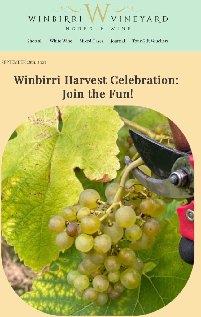 11 Days of Public Harvest Given the overwhelming interest we’ve received; we’re hosting a special Open Public Harvest spanning eleven days. This is your golden opportunity to immerse yourself in the vibrant spirit of our community. Whether you’re a solo adventurer or coming with a group, everyone is invited to contribute to the next iconic vintage. This years Bacchus crop is looking like the largest in Winbirri’s history!!