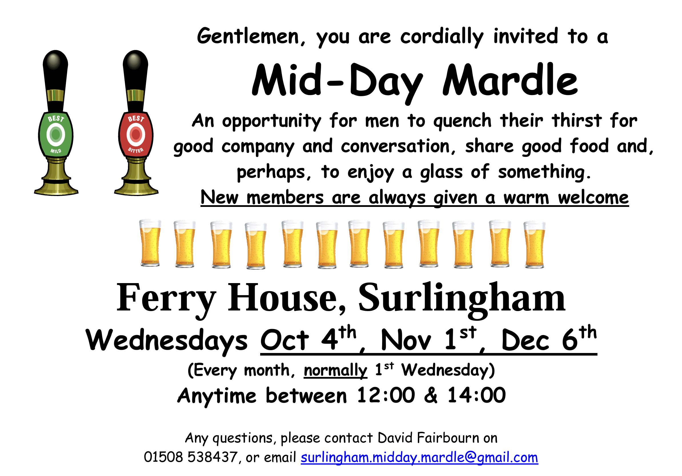 • Mens Mardle 08/01/2026 at 12:00 – 14:00 Surlingham Ferryn1 Ferry RoadnSurlinghamnNorfolknNR14 7ARnUnited Kingdom
