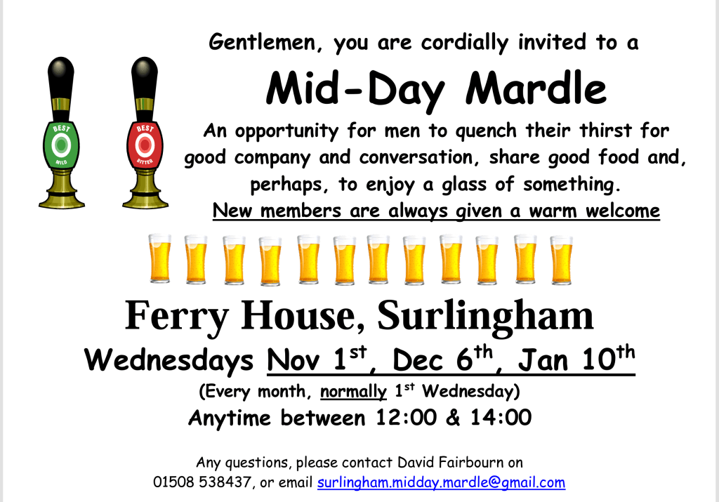 Men’s Mardle Tomorrow, 1st November, Surlingham Ferry