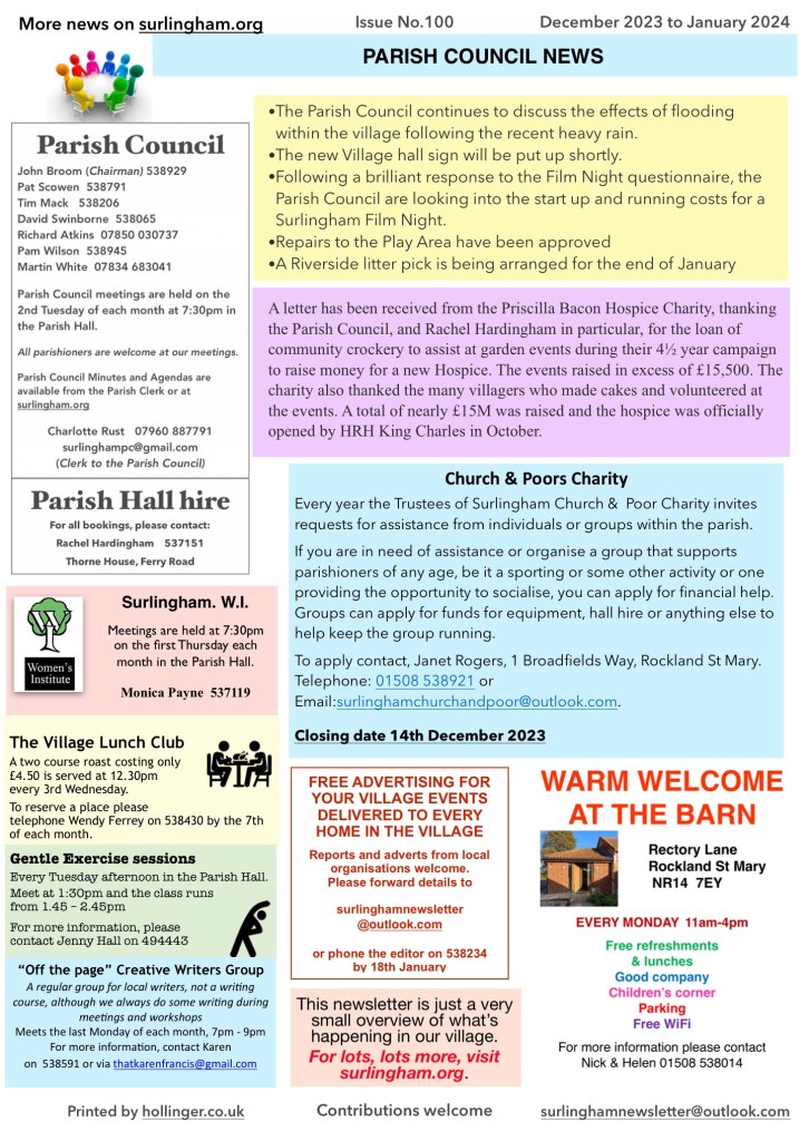 The printed copies will be distributed with ElevenSays to every household in the village from Saturday 25th November.