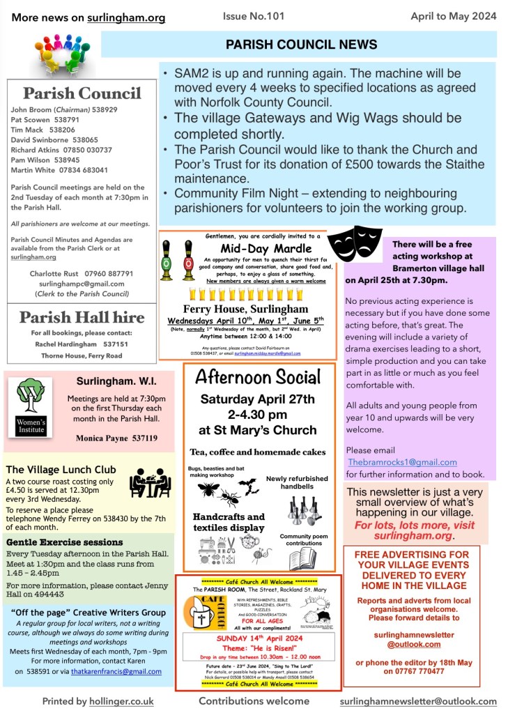 Please see attached for the latest edition of the Surlingham Newsletter.