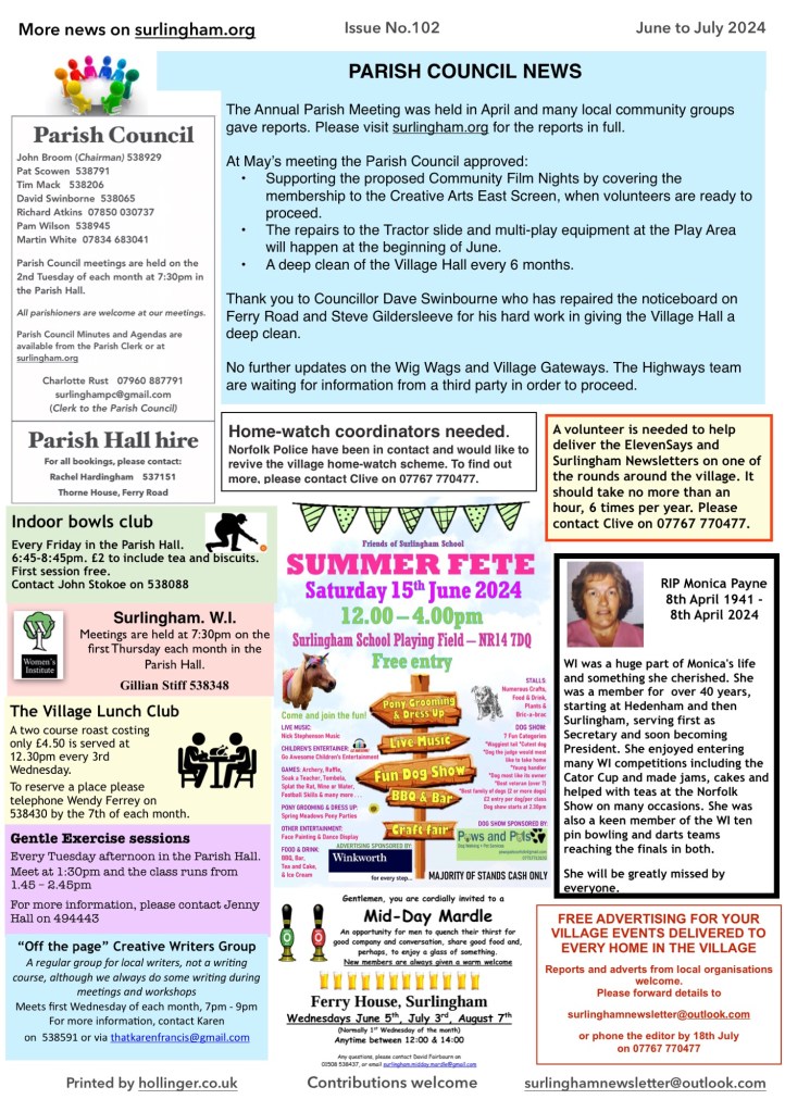 Please see attached for the latest edition of the Surlingham Newsletter.
