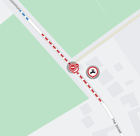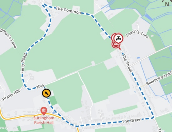 Alternative route is via: U78020 The Common, Ferry Road, New Road, Pond Lane, School Lane, The Green, The Covey, The Street