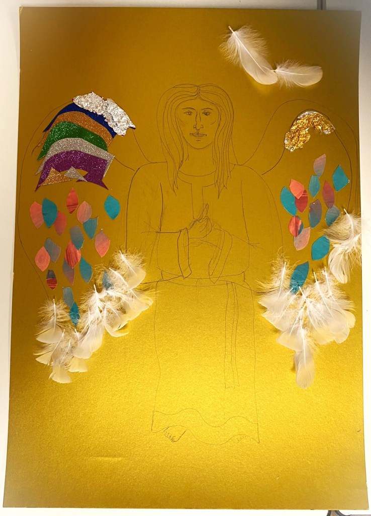 We had fun at last week’s Still decorating an angel and Jacob’s ladder (see attached photos). We’re keeping the decoration going over the next couple of weeks, and The Barn in Rockland St Mary will be open on Monday (7th) from 9.15am to 4.30pm if you’d like to come in and add to these boards. You’re welcome to bring your own items to stick on, or use the materials available here.