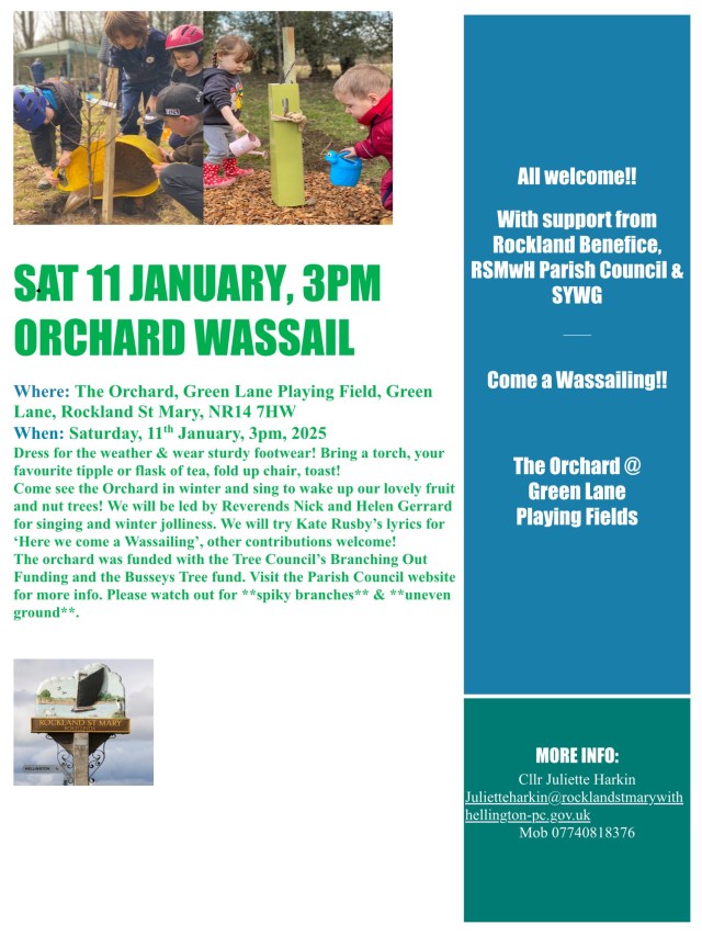 Orchard Wassail in Rockland St Mary on Saturday 11th January at 3pm